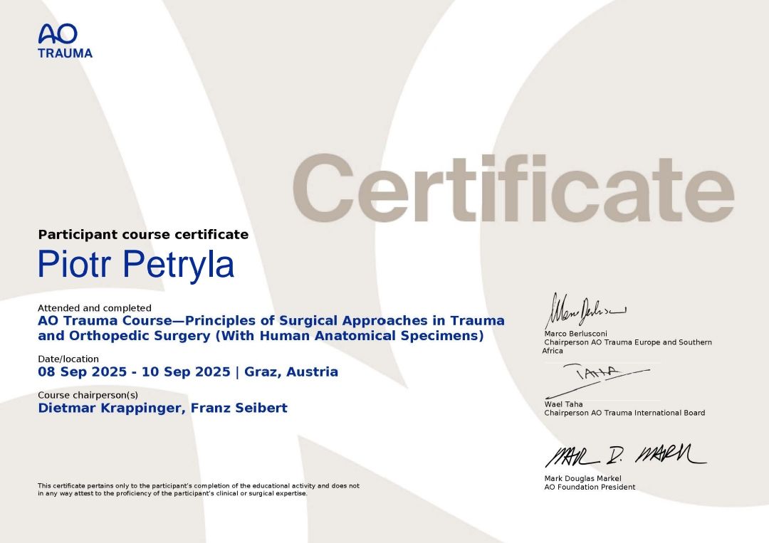 Jestem lekarzem w trakcie specjalizacji z ortopedii i traumatologii narządu ruchu, absolwentem Uniwersytetu Medycznego w Łodzi.