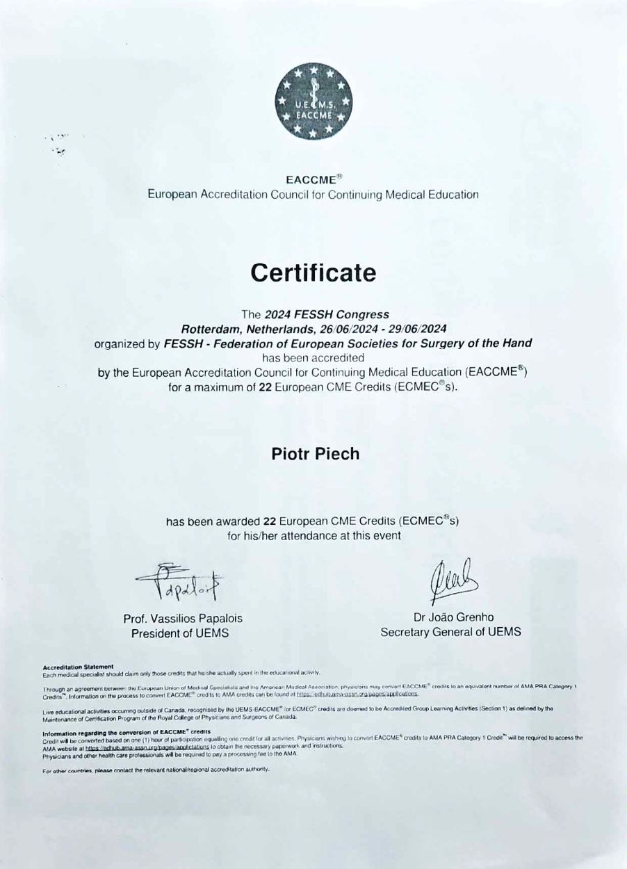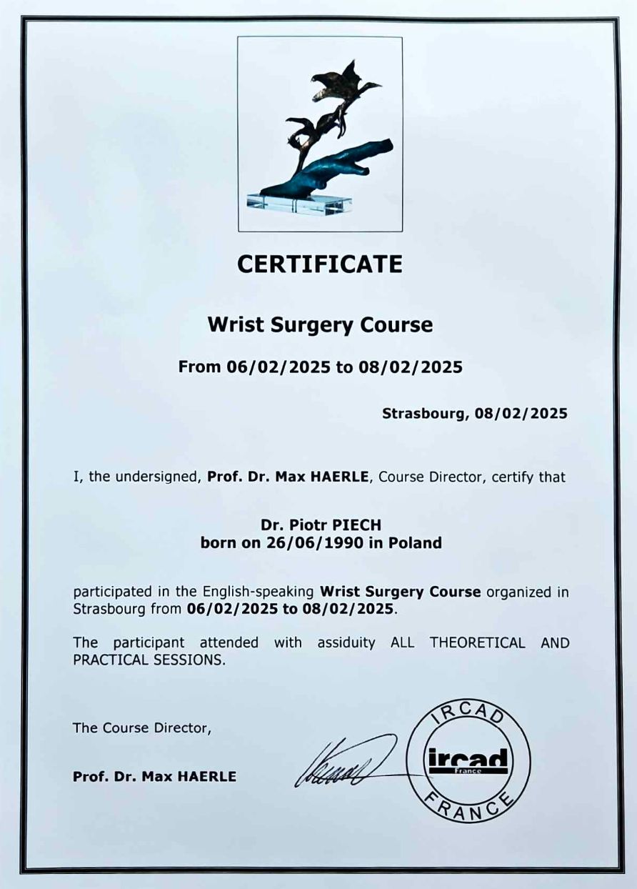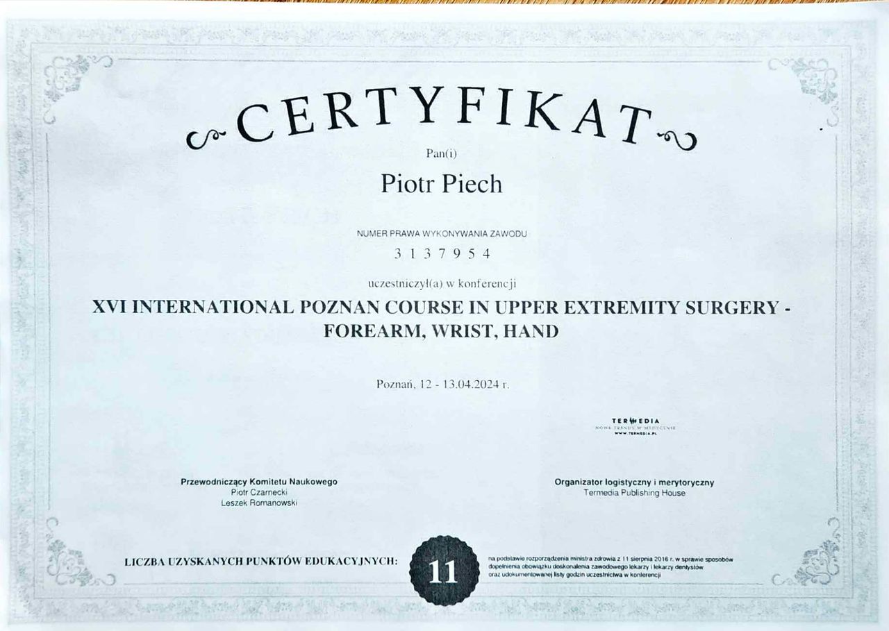 Świetny specjalista, polecam pomimo długiego czasu oczekiwania na konsultacje. Operacyjnie złożył ciężkie złamanie prawnego nadgarstka, przywracając 100% sprawność. Polecam
