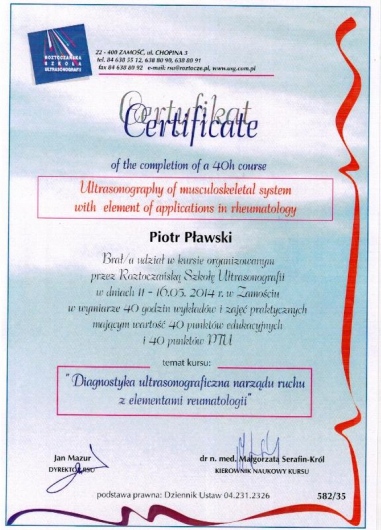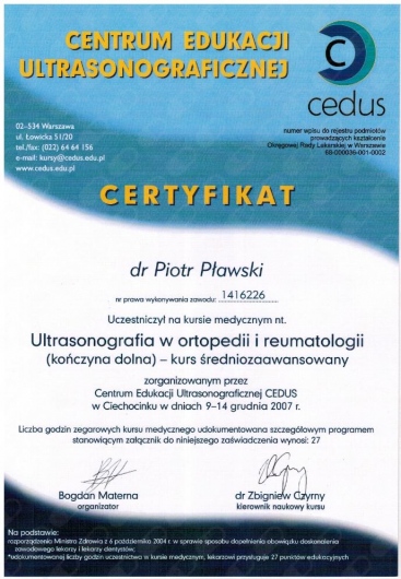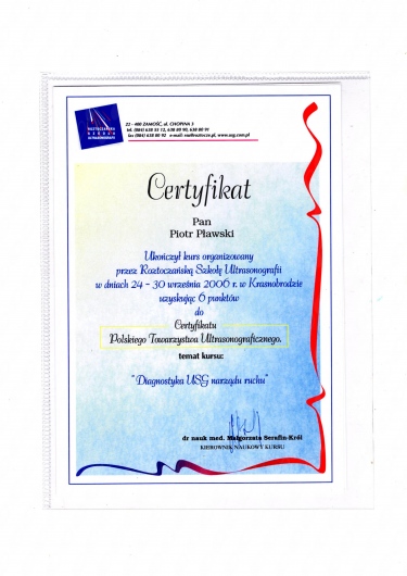 Jaki jest zakres porad oferowanych przez Piotr Pławski?Piotr Pławski to ortopeda. Na podstawie swojego doświadczenia i wykształcenia Piotr Pławski oferuje usługi takie jak: konsultacja ortopedyczna, konsultacja ortopedyczna + USG, iniekcja pod kontrolą USG.