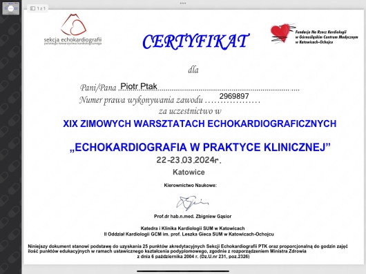 Jaki jest zakres porad oferowanych przez Piotr Ptak?Piotr Ptak to nefrolog, kardiolog. Na podstawie swojego doświadczenia i wykształcenia Piotr Ptak oferuje usługi takie jak: konsultacja kardiologiczna, konsultacja kardiologiczna + EKG, konsultacja kardiologiczna (pierwsza wizyta), konsultacja kardiologiczna + ECHO serca, konsultacja kardiologiczna + EKG + ECHO serca, ECHO serca, Konsultacja nefrologiczna, Holter EKG, Holter ciśnieniowy, EKG - elektrokardiografia.