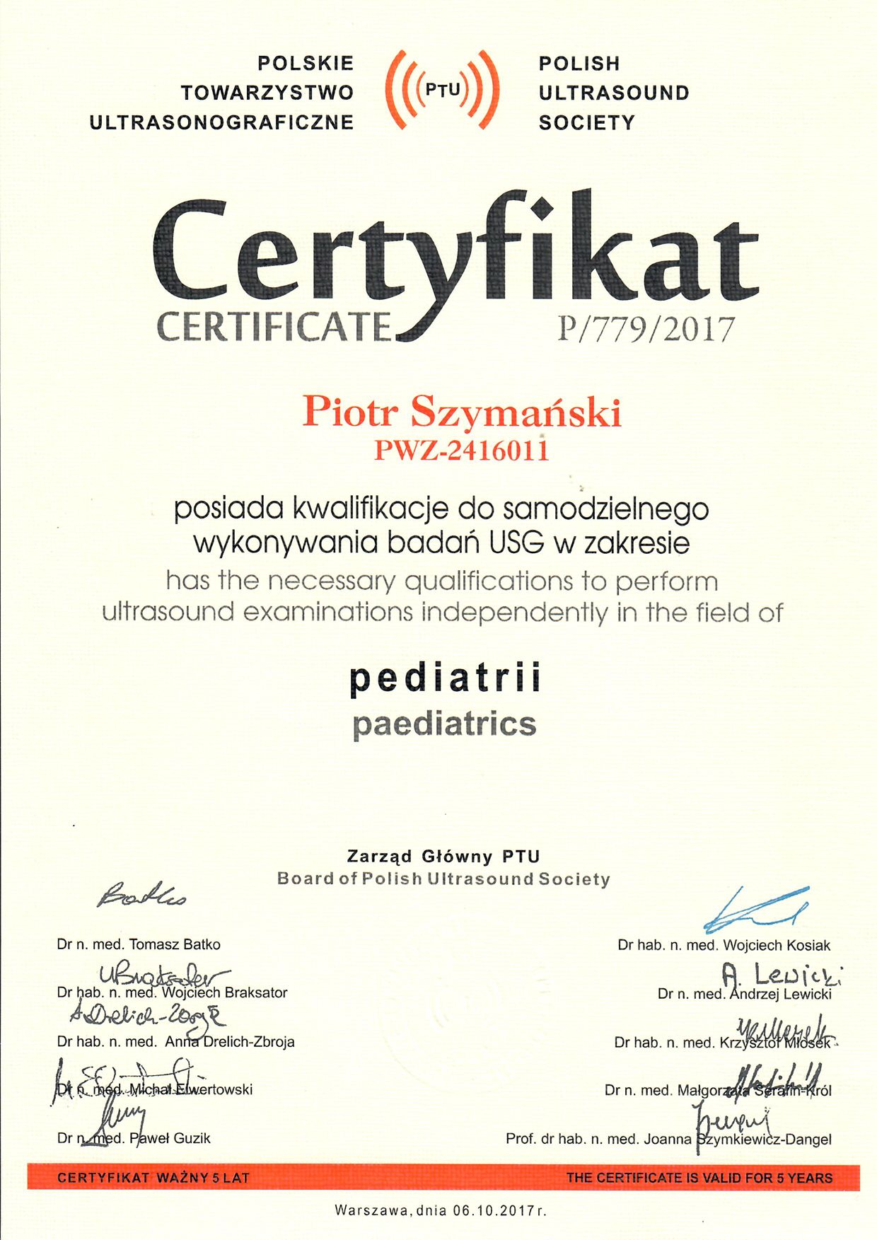 Jaki jest zakres porad oferowanych przez Piotr Szymański?Piotr Szymański to neonatolog, pediatra. Na podstawie swojego doświadczenia i wykształcenia Piotr Szymański oferuje usługi takie jak: USG stawów biodrowych niemowląt, USG głowy i jamy brzusznej u niemowląt, USG kanału kręgowego, USG zmian skórnych u dzieci, USG węzłów chłonnych - dzieci, USG tarczycy - dzieci, USG stawów biodrowych dzieci, USG jamy brzusznej dzieci, USG Płuc u dzieci.