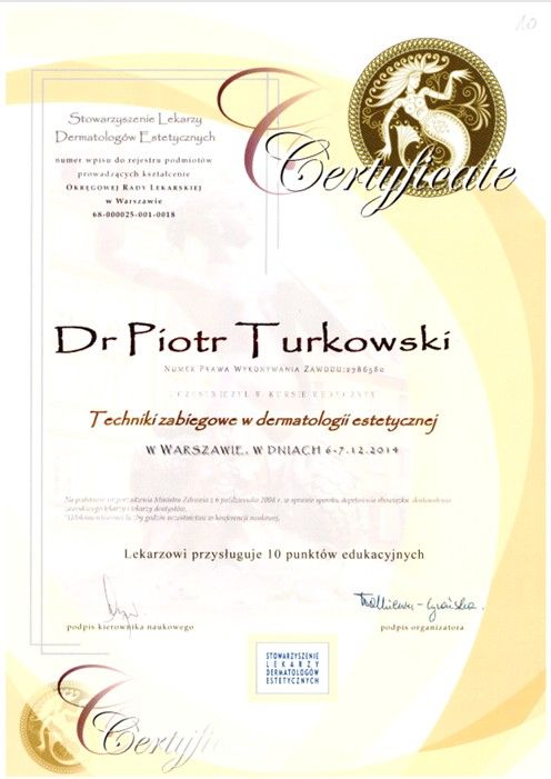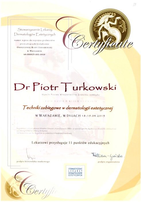 Dr Piotr Turkowski jest specjalistą chirurgii plastycznej oraz chirurgii odtwórczej włosów. Zajmuje się m.in. przeszczepami włosów, chirurgią piersi, plastyką twarzy, liposukcją oraz modelowaniem sylwetki z wykorzystaniem lipotransferu.