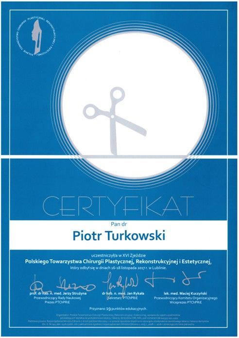 Jaki jest zakres porad oferowanych przez Piotr Turkowski?Piotr Turkowski to chirurg plastyczny. Na podstawie swojego doświadczenia i wykształcenia Piotr Turkowski oferuje usługi takie jak: Konsultacja z zakresu chirurgii plastycznej, przeszczep włosów, Liposukcja, liposukcja pośladków, lipofilling, Facelifting, konsultacje z zakresu chirurgii plastycznej i ginekomastii, blefaroplastyka, modelowanie sylwetki, powiększanie piersi.