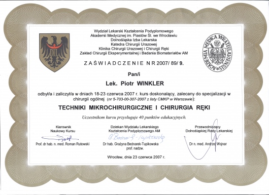 Odbyłem szkolenia w najlepszych niemieckich klinikach leczących kręgosłup w Monachium, Hamburgu i Herne. W 2017 r. zostałem międzynarodowym instruktorem-ekspertem endoskopowych technik operacyjnych.