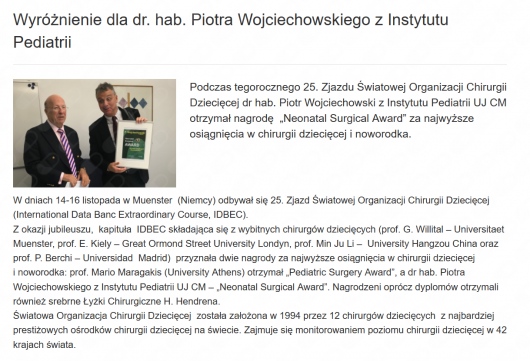 W 2013 roku obroniłem na Wydziale Lekarskim UJ Prace Habilitacyjną.