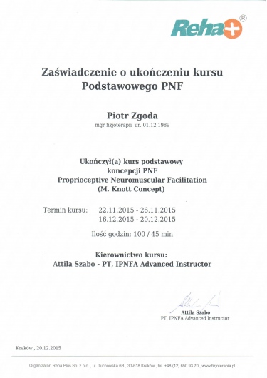 • Piotr Zgoda Gabinet Fizjoterapii • Konsultacja fizjoterapeutyczna ( I wizyta, diagnoza + terapia ) •