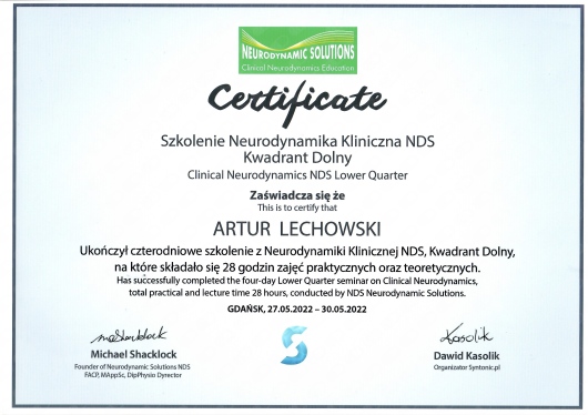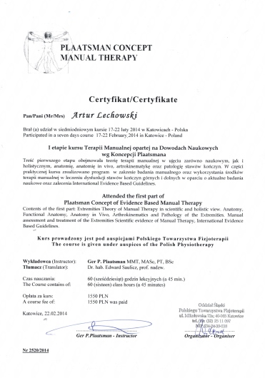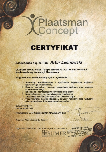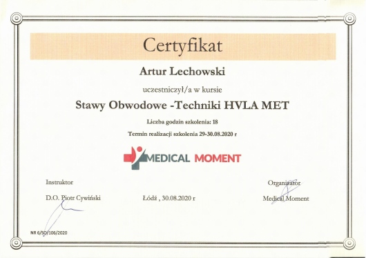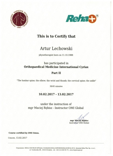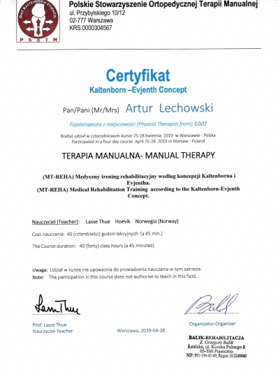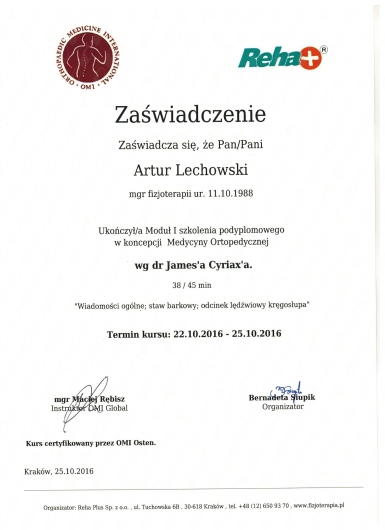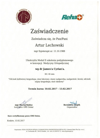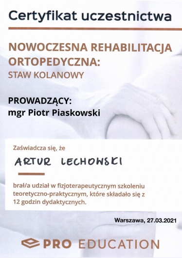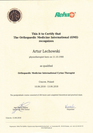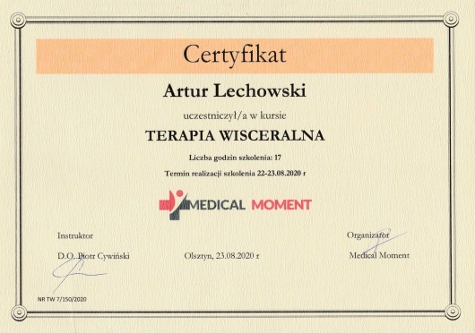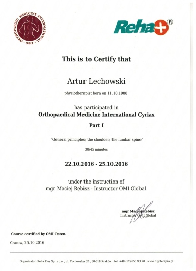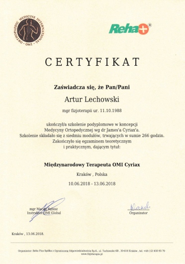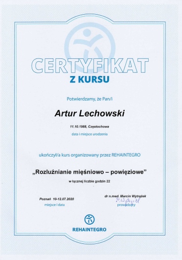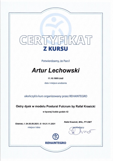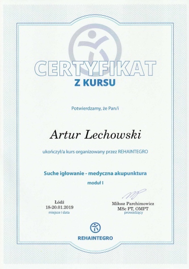 Trafiliśmy do Pana Artura z bólem stawu krzyżowo biodrowego, syn 13 lat, trenuje pływanie, piłkę wodną. Ortopeda zalecił lek antyzapalny, ograniczenie aktywności sportowej- 3 miesiące tego leczenia nie przyniosły żadnych pozytywnych efektów. Zdecydowanie polecam, Pan Artur jest kompetentny, zaangażowany, przeprowadził szczegółowy wywiad, zaproponował zmianę leczenia zalecanego nam przez ortopedę, dokładnie i wyczerpująco wyjaśniając wszystkie następne etapy leczenia. Nie bez znaczenia, szczególnie dla pacjenta pozostaje empatyczne podejście, duża kultura i miła atmosfera podczas wizyty. Po 6 tyg leczenia mamy znacznie zmniejszone dolegliwości bólowe, przy dużej aktywności sportowej syna i wyłączeniu leki antyzapalnego/ przeciwbólowego.