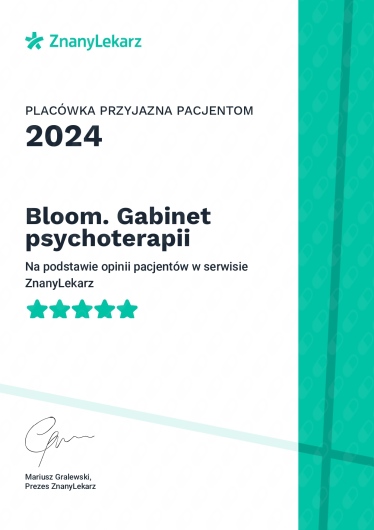 Jeśli poszukujesz profesjonalnej i empatycznej pomocy psychoterapeutycznej, gabinet psychoterapii Bloom jest miejscem dla Ciebie. Zapraszamy do kontaktu i umówienia się na konsultację, aby wspólnie rozpocząć drogę do lepszego zdrowia psychicznego i pełniejszego życia.