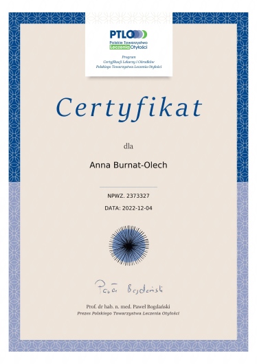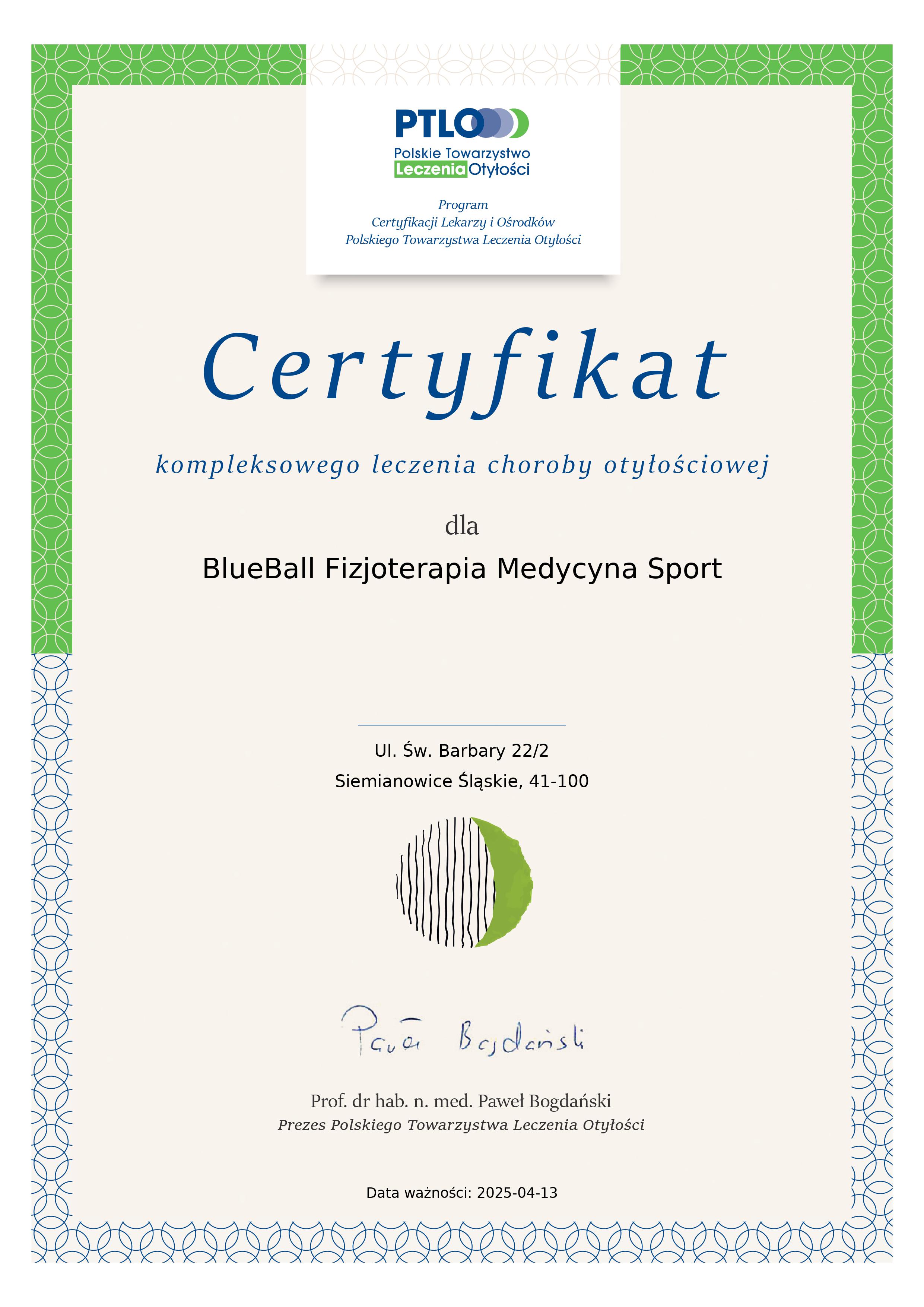 W tym roku otrzymaliśmy certyfikat ośrodka Polskiego Towarzystwa Leczenia Otyłości! Jesteśmy jednym z niewielu miejsc na mapie Śląśka gdzie kompleksowo leczymy chorobę otyłościową.