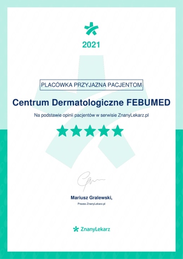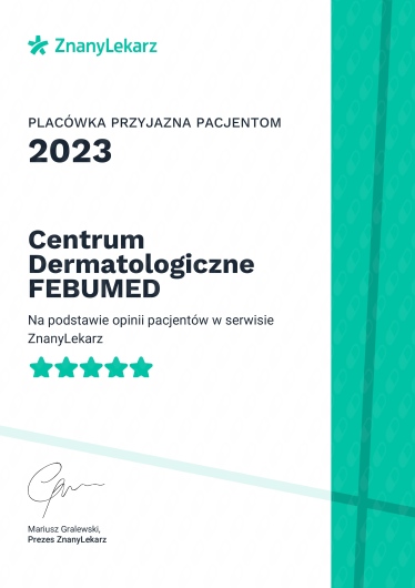 Jak mogę umówić wizytę w Centrum Dermatologiczne FEBUMED?Centrum Dermatologiczne FEBUMED ma zawsze aktualny kalendarz na ZnanyLekarz. Wystarczy, że wybierzesz termin, który najbardziej Ci odpowiada. Umówienie wizyty jest darmowe, a przed wizytą otrzymasz przypomnienie.