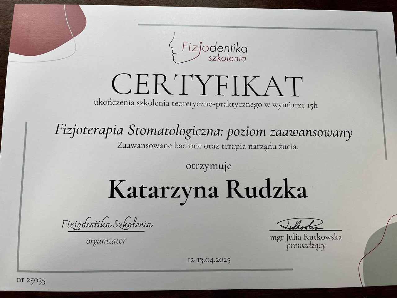 Do Pani Marioli trafiłam z przewlekłym, 24h/dobę, bólem żuchwy, szyi, ręki i pleców spowodowanym długotrwałym fizycznym przeciążeniem lewej części ciała, po uprzednich dwóch terapiach u innych terapeutów. Wnikliwość, duży wachlarz umiejętności, empatia i systemowe podejście Pani Marioli pozwoliło spojrzeć na mój problem z zupełnie innej perspektywy niż przy poprzednich dwóch terapiach. Pani Mariola po wnikliwym wywiadzie i diagnostyce rozpoczęła terapię od rehabilitacji żuchwy (100% objawów trwale ustąpiło po pierwszej wizycie) i szyi. Kolejny etap to odblokowane klatki, pleców, lekka manipulacja i zalecenia ćwiczeń w domu - to krok milowy w ustępowaniu bólu. Z uwagi na czas trwania (kilka lat) i złożoność czynników powodujących dolegliwości terapia będzie procesem długotrwałym, ale dzięki Pani Marioli wierzę, że umożliwi mi powrót do całkowitej, trwałej sprawności i aktywności. Gorąco polecam, szczególnie osobom, u których problem jest złożony!
