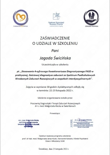 oraz Specjalistów po szkołach i kursach rozwijających swoją wiedzę w zakresie: