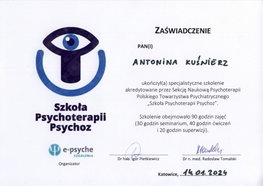 ✧ psychoterapeutów (nurty: psychodynamiczny, poznawczo-behawioralny, systemowy, integracyjny)