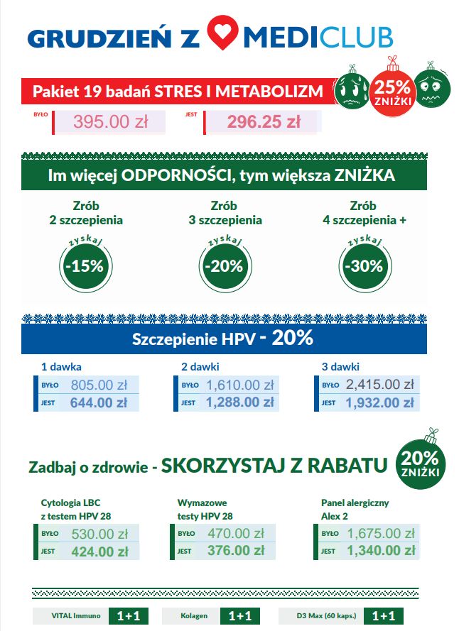 Zachęcamy do zapisania się do MediClub. Członkowie zyskują atrakcyjne rabaty na konsultacje, badania i suplementy oraz newsletter edukacyjny o tematyce zdrowotnej.