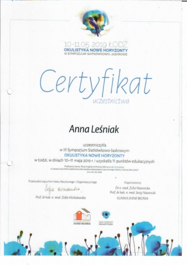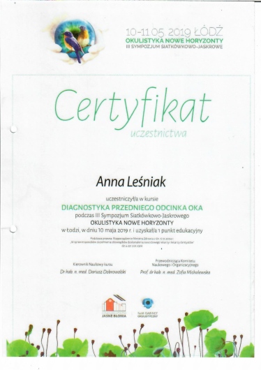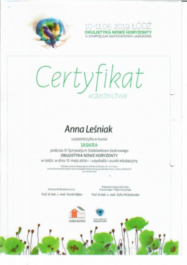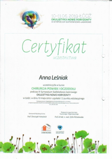 Trafiłam do Pani Doktor z polecenia i jestem zachwycona. Niezwykle profesjonalna, empatyczyna, cierpliwa, kompetentna specjalistka. W koncu zostaly mi dobrane leki , które nie powodują pieczenie i swędzenia oczu. Znalazlam swojego lekarza, będę wracać. Dziękuję za pomoc!
