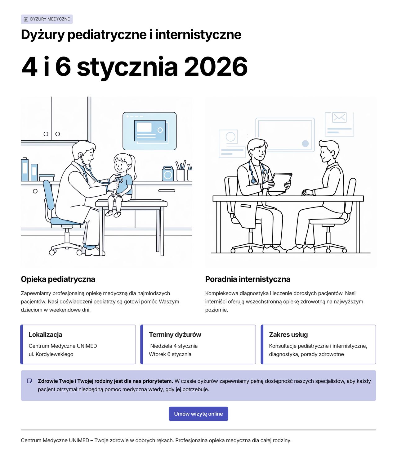 Dyżury pediatryczne i internistyczne – zapraszamy w dniach 4 i 6 stycznia!