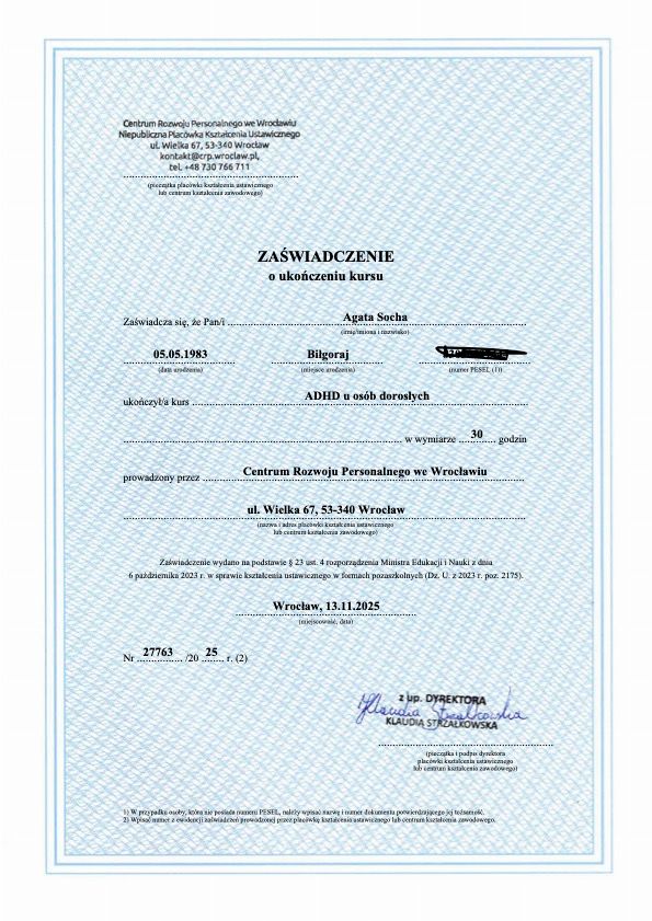 Indywidualne podejście – każda osoba i każda historia są inne. Dlatego dopasowujemy metody pracy do konkretnego pacjenta, jego problemów i celów.