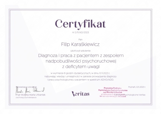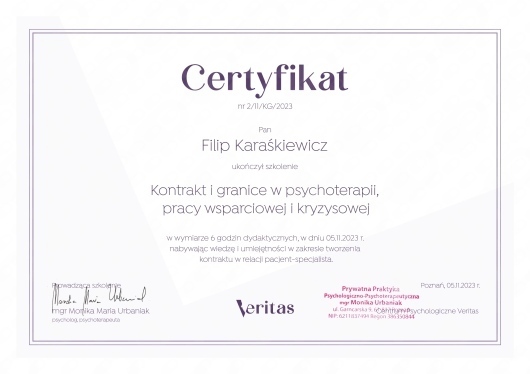 Na sesjach czuję się wysłuchana i bezpieczna. Mam poczucie braku oceniania oraz dużego komfortu w rozmowie, co sprawia, że łatwo mi się otworzyć. Od początku dobrze nam się rozmawiało i szybko złapaliśmy wspólny język. Widać też duże zaangażowanie z jego strony. Jest uważny, pamięta szczegóły z poprzednich spotkań i naprawdę skupia się na tym, co mówię. Z całego serca polecam terapię u Pana Filipa osobom, które szukają wsparcia, zrozumienia i konkretnych narzędzi do zmiany.
