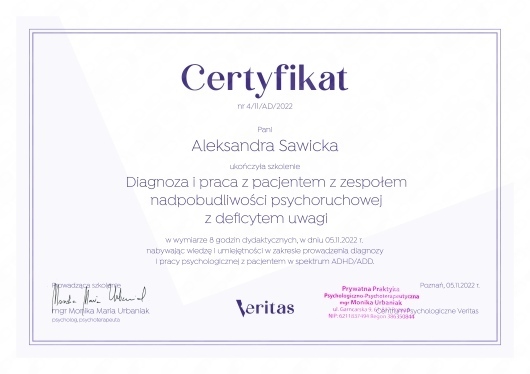 Gdzie jest Centrum Psychologiczne Veritas?Adres placówki Centrum Psychologiczne Veritas to Warszawska 39/41 Poznań.
