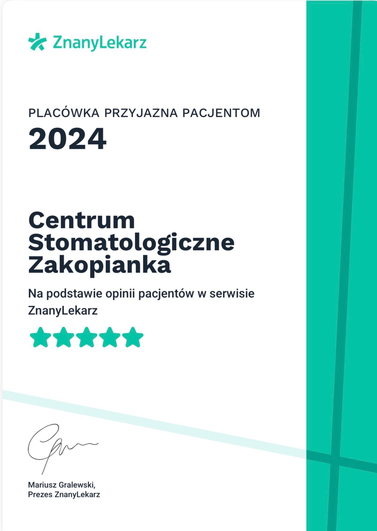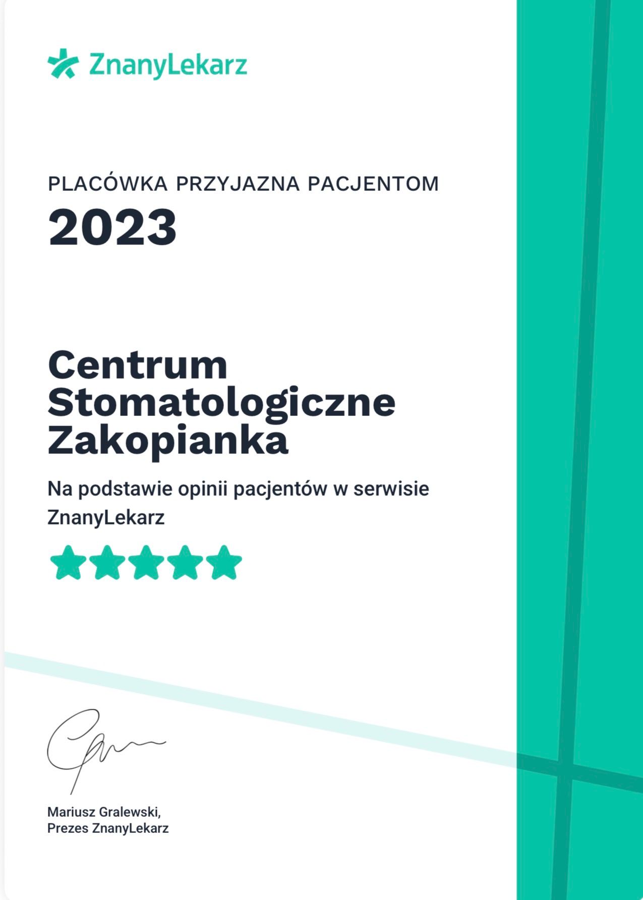 Dzięki zaufaniu naszych wspaniałych Pacjentów, którzy powierzyli nam tak ważną kwestię, jaką jest zdrowie zębów, możemy się rozwijać i być jeszcze bliżej Was.