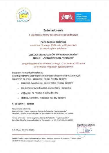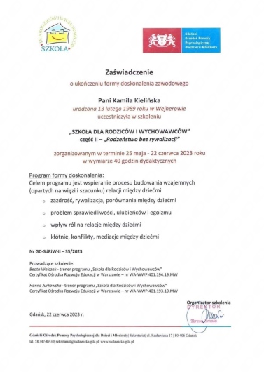 Widzimy dużą poprawę w jej samopoczuciu. Pani Mariola ma świetne podejście do dzieci — potrafi słuchać, wspierać i inspirować do pozytywnych zmian.