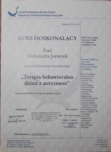 Dzięki trafnym obserwacjom i skutecznym metodom pracy zauważyliśmy realną poprawę w zachowaniu i samopoczuciu naszego dziecka.