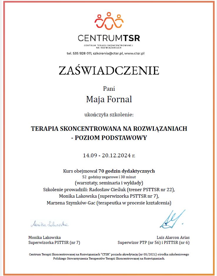 Zofia pracuje zgodnie z Kodeksem Etycznym Psychologa, stawiając na relację pełną zaufania, szacunku i zrozumienia.