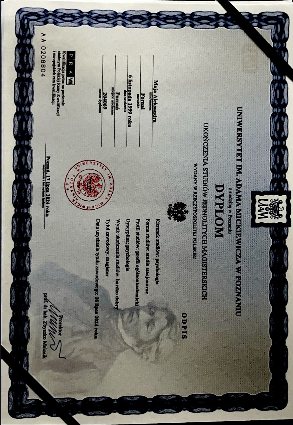 Zofia ukończyła jednolite studia magisterskie na UAM ze specjalnością seksuologia kliniczna oraz psychologia kliniczna, a swoją wiedzę pogłębia w Krakowskim Centrum Psychodynamicznym. Ma również podyplomowe wykształcenie z psychologii uzależnień (SWPS).