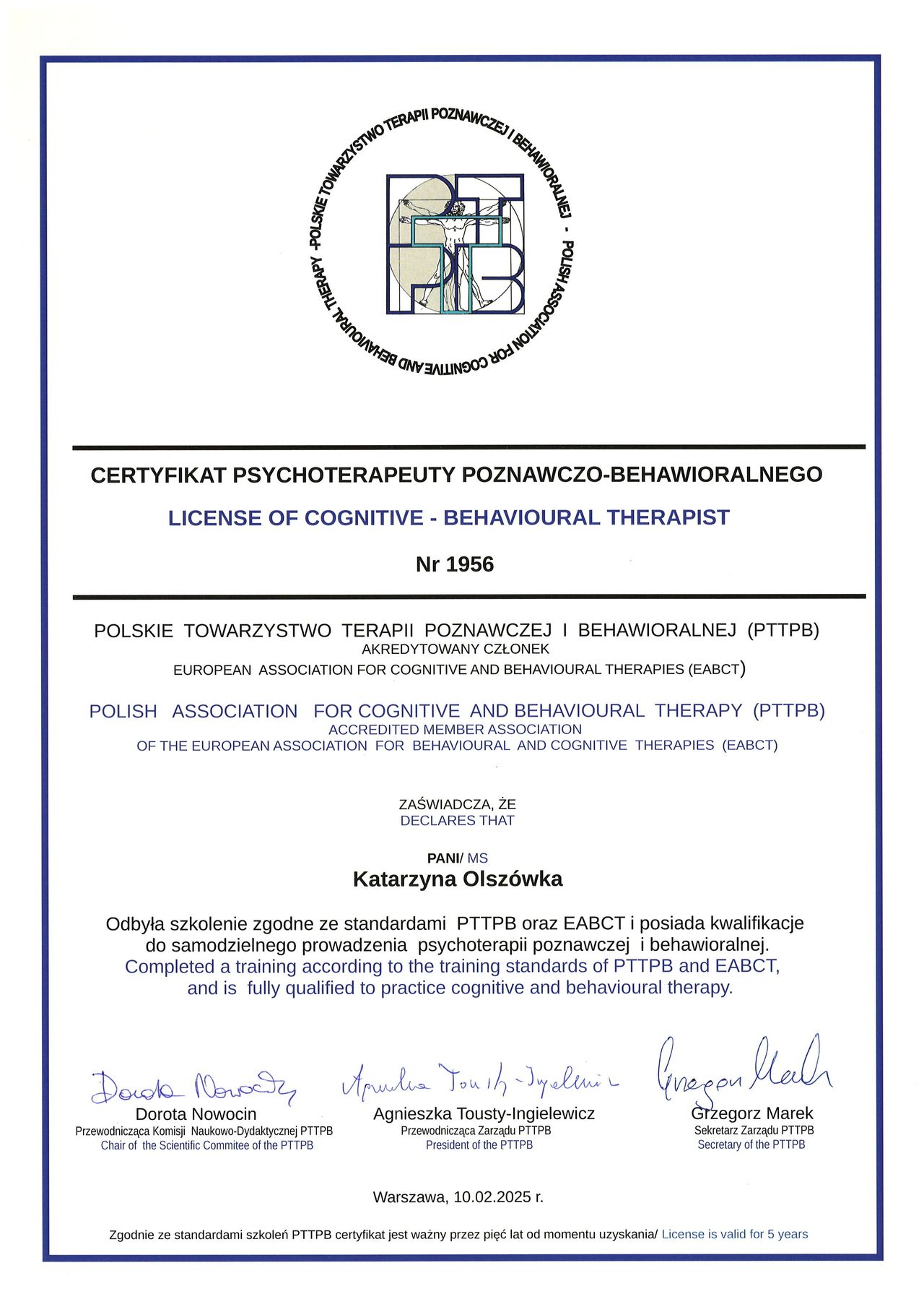 Czuję, że naprawdę zależy jej na tym, by mi pomóc, i to daje mi poczucie bezpieczeństwa oraz motywację do dalszej pracy nad sobą. Z pełnym przekonaniem mogę powiedzieć, że ta terapia bardzo mi pomaga i jest dla mnie ważnym wsparciem.