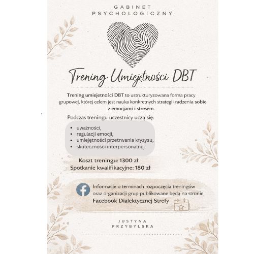 Dialektyczna Strefa to miejsce, które łączy empatię i profesjonalne podejście do terapii, oferując wsparcie dla osób dorosłych.