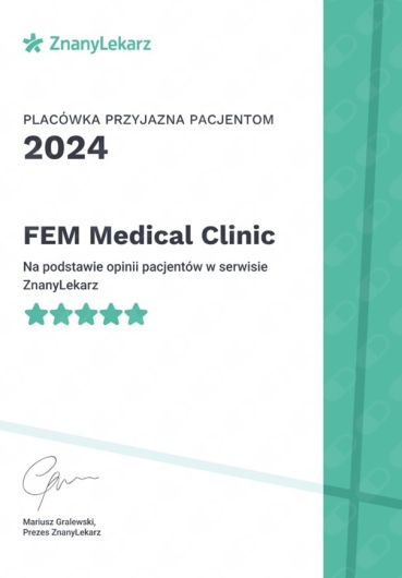 Jak mogę umówić wizytę w FEM Medical Clinic?FEM Medical Clinic ma zawsze aktualny kalendarz na ZnanyLekarz. Wystarczy, że wybierzesz termin, który najbardziej Ci odpowiada. Umówienie wizyty jest darmowe, a przed wizytą otrzymasz przypomnienie.