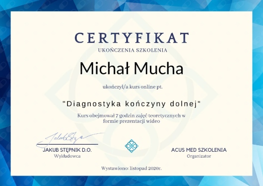 Po dzisiejszej wizycie z Panem Marcinem, moge go szczerze polecic. Wizyta przebiegła w przyjaznej, konkretnej atmosferze z dużą ilością wiedzy. Zostały pokazane ćwiczenia jakie mam wykonywac oraz był wykonany dobór odpowiednich wkładek pod moje stopy. Wierzę, że pomogą, ponieważ od momentu przymiarki czułam, że stopy są dobrze ułożone