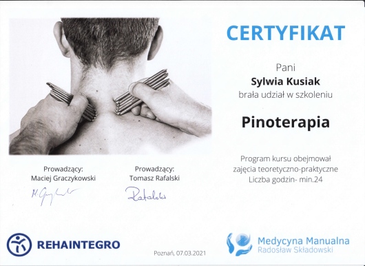 - Terapia manualna - skuteczne techniki na bóle kręgosłupa, stawów, mięśni, wykorzystujące zaawansowane metody manualne.