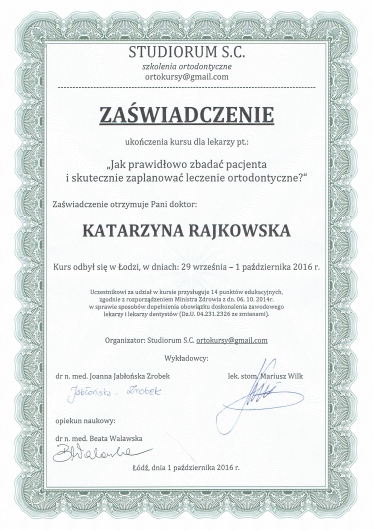 Pani Katarzyna: Bardzo profesjonalnie. Widać naukowy warsztat w aspekcie ortodoncji dzieci. Czuć zaangażowanie. Podejście do dziecka rewelacyjne.