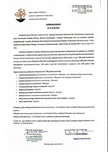 Arkadiusz Parker - psycholog, pedagog, psychoterapeuta (w trakcie certyfikacji),