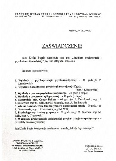 Swoją pracę regularnie superwizujemy, stale podnosimy kwalifikacje i działamy zgodnie z kodeksem etycznym psychoterapeuty/psychologa.