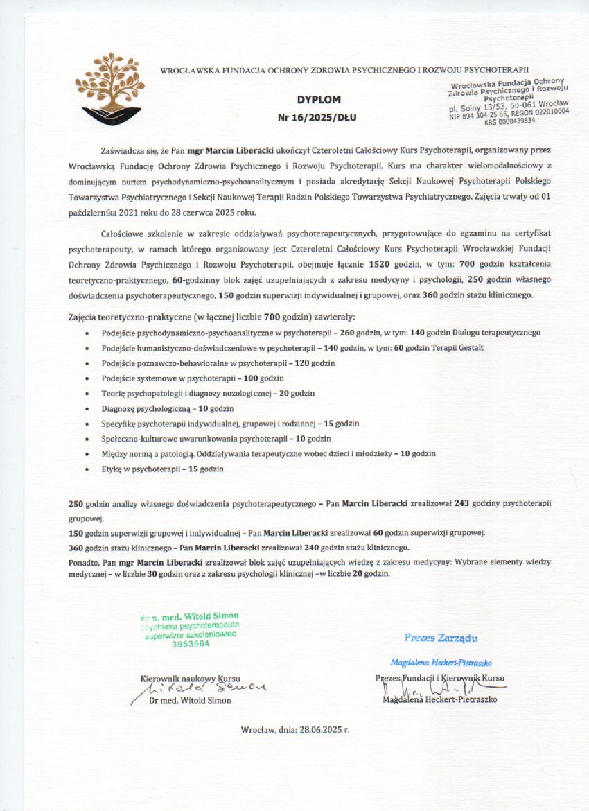 Marcin Liberacki - psychoterapeuta (w trakcie certyfikacji),