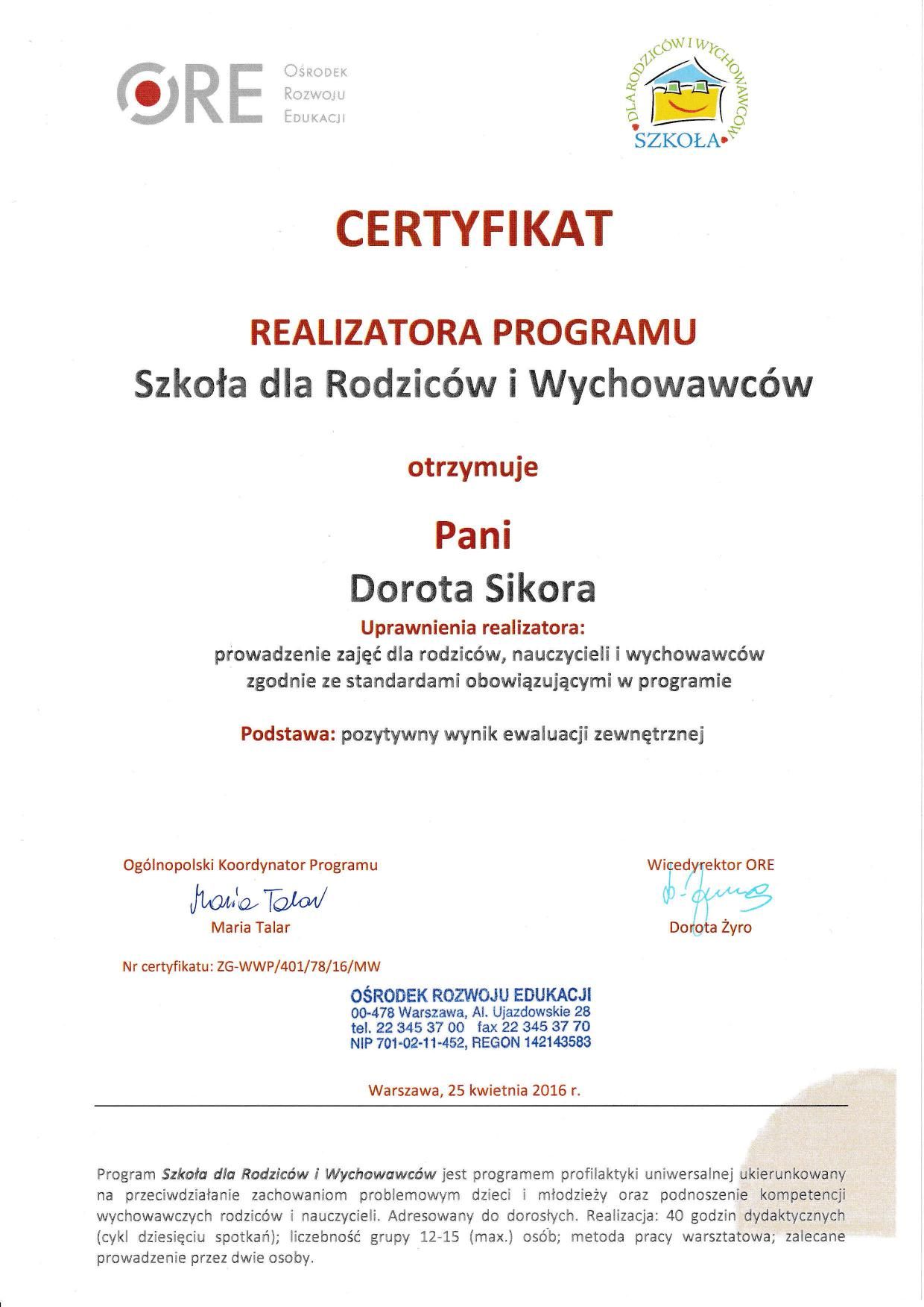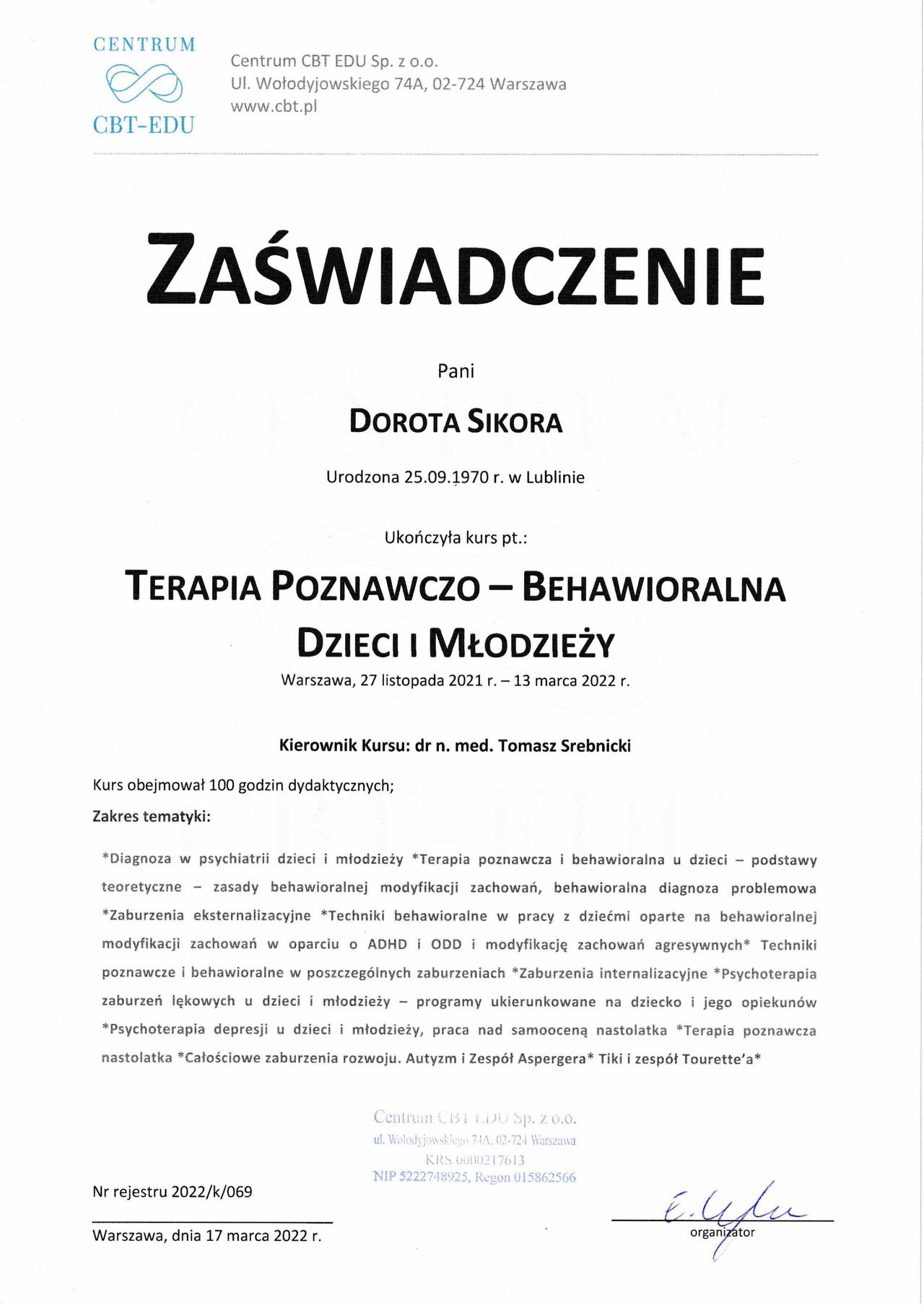 Jesteśmy bardzo zadowoleni z wizyt u Pani dr Doroty Sikory. Zalecenia, rady przekazane przez Panią Dorotę oraz wdrożone w nasze życie przynoszą rezultaty. Serdecznie polecam współpracę z Panią Dorotą! :).