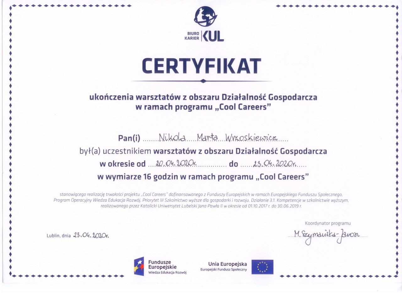 Dolna 3 Maja 3/115, LublinCertyfikaty