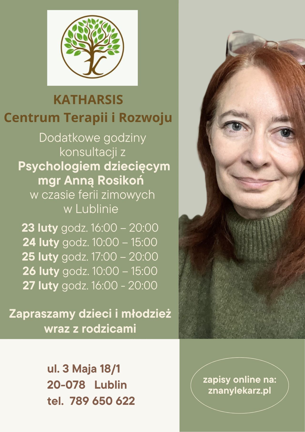 Centrum KATHARSIS jest dostępne dla Ciebie – zarówno stacjonarnie, jak i online. Rejestracja możliwa jest telefonicznie, mailowo oraz przez formularz na naszej stronie internetowej. Pracujemy od poniedziałku do piątku w godzinach 8:00–20:00. W sytuacjach pilnych staramy się znaleźć szybki termin konsultacji, a w wyjątkowych przypadkach oferujemy możliwość wizyt domowych.