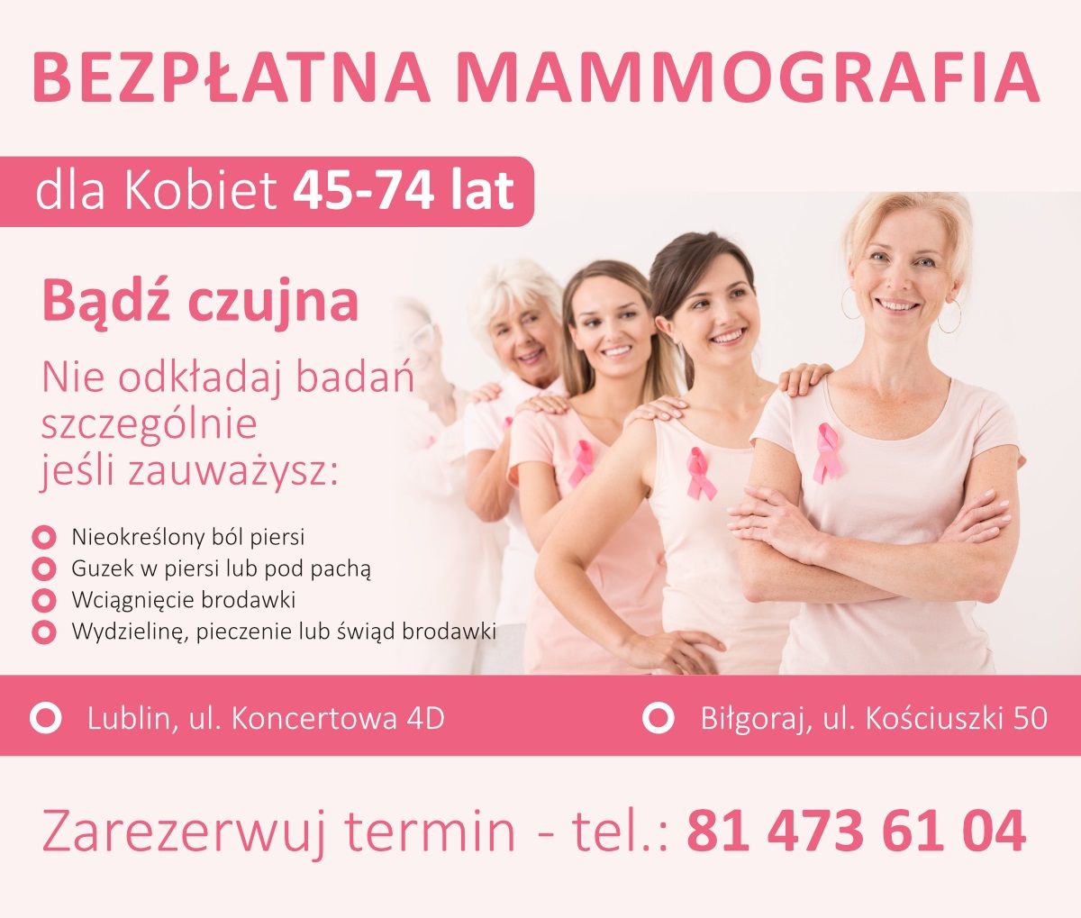 • które nie miały wykonywanego badania mammograficznego w programie profilaktycznym w ostatnich 2 latach.