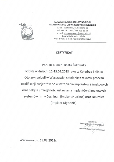 - Medaf Laryngologia Audiologia Foniatria Beata Żukowska