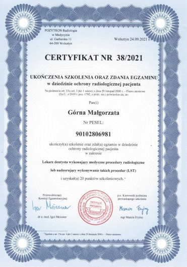 Jest mi naprawdę bardzo miło, że obdarzyła mnie Pani takim zaufaniem i że od tak długiego czasu jest Pani moją pacjentką. Dziękuję również za polecenie — to dla mnie ogromne wyróżnienie.