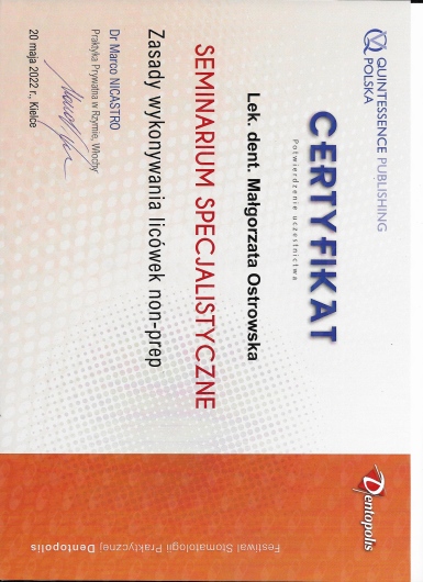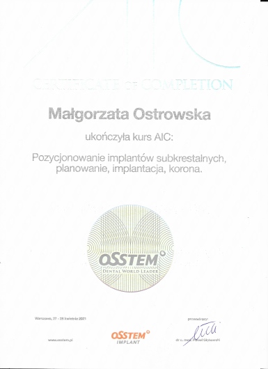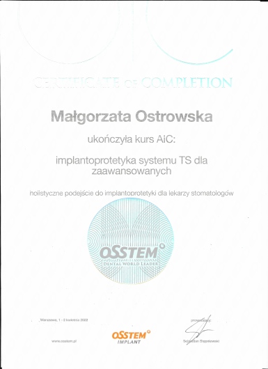 Leczę się u P. Ostrowskiej od kilku lat - skuteczność 100%, radziła sobie z przypadkami, z którymi nie dawali sobie rady inni stomatolodzy - POLECAM.