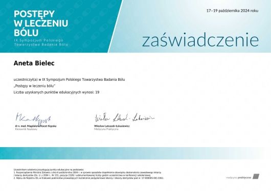 Polecam serdecznie, Pan doktor ma bogate doświadczenie w dziedzinie ortopedii, przeprowadził wywiad, wykonał badania i przedstawił diagnozę. Poczułam ogromną ulgę widząc, że moje schorzenia zostaną poważnie potraktowanie i nie zostanę sama z bólem. Zastosował leczenie.
