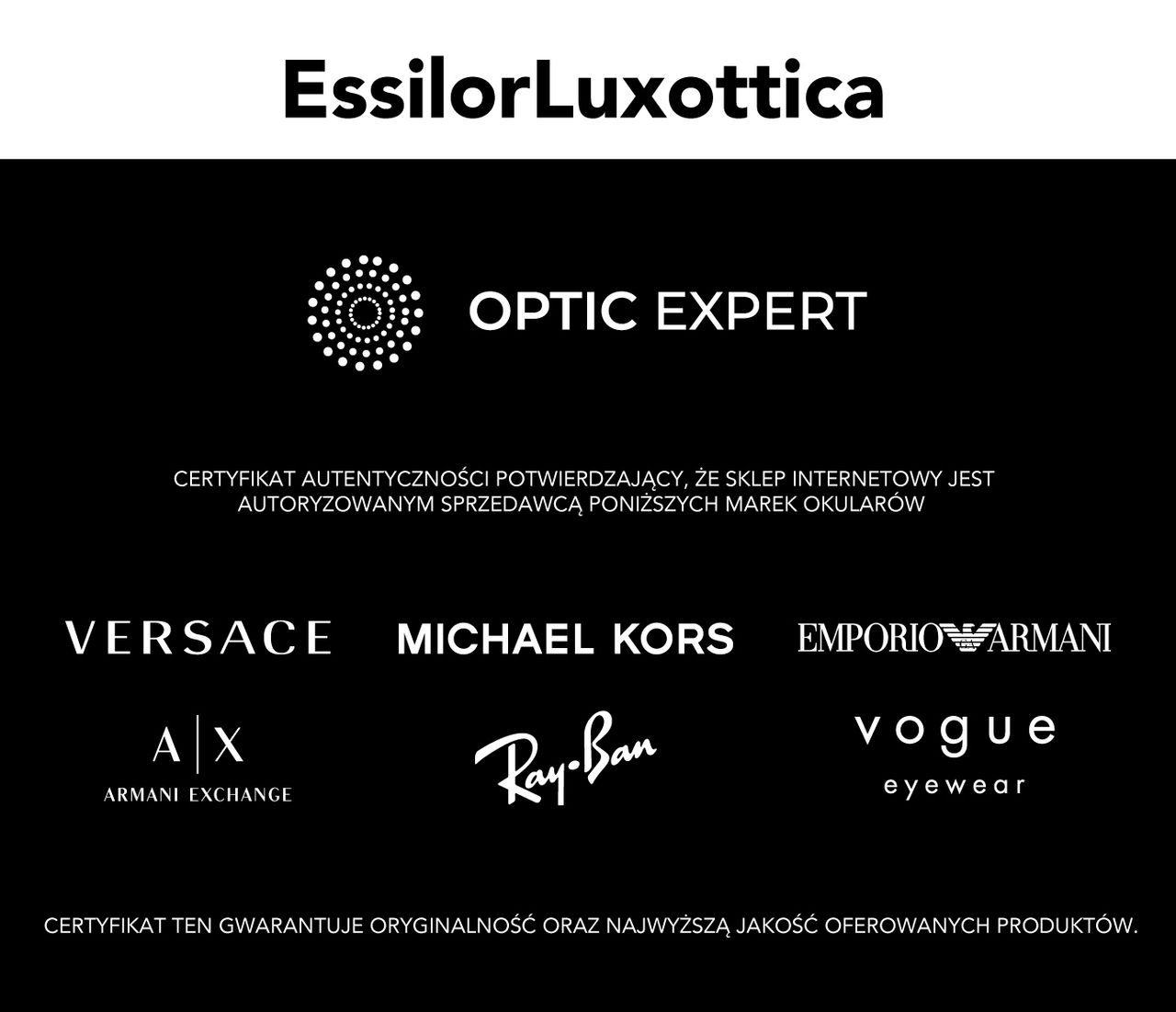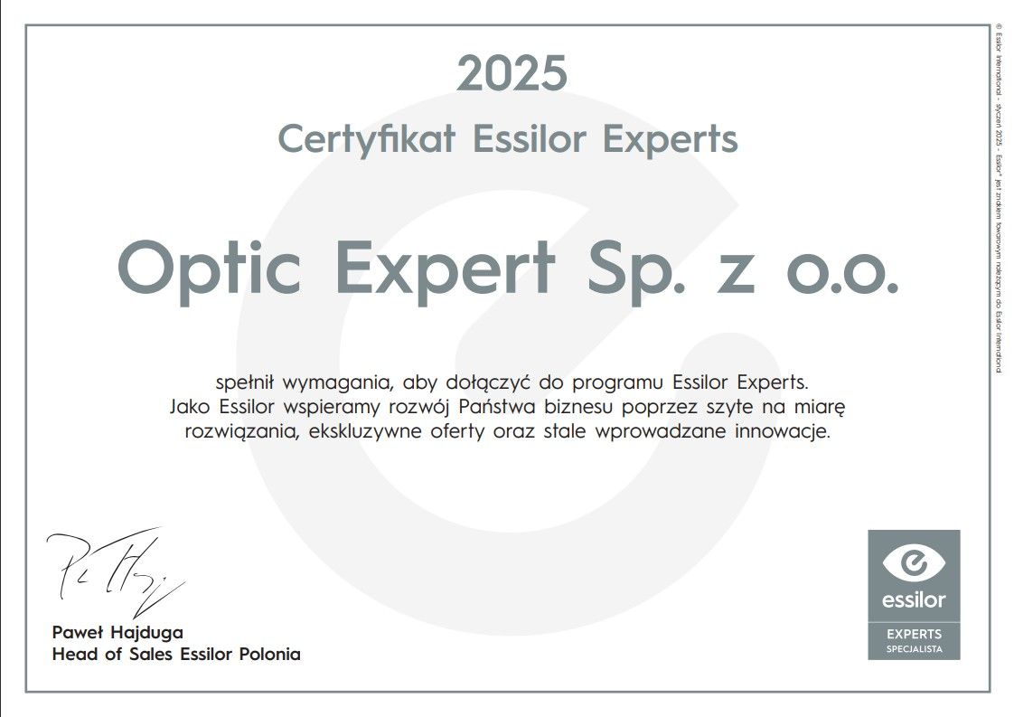 Salon Optic Expert to część szybko rozwijającej się sieci profesjonalnych punktów optycznych, w których Specjaliści za główny cel stawiają sobie zdrowie i komfort Klientów. Możemy się pochwalić konkurencyjną ofertą cenową i bogatym wyborem ładnych i modnych opraw oraz okularów przeciwsłonecznych. Dajemy Państwu gwarancję najniższej ceny na Podhalu. W ofercie salonów znajdują się soczewki okularowe, akcesoria do okularów, okulary przeciwsłoneczne oraz oprawy korekcyjne marek z różnych segmentów, zarówno dla kobiet, mężczyzn, jak i dzieci. Klienci mogą wybierać spośród ponad 1 000 opraw m.in. od marek takich jak Tom Ford, Versace, Boss, Hugo, Ray-Ban®, Vogue, Armani Exchange, Ralph Lauren, Carrera, Tommy Hilfiger czy Carolina Herrera. Od września poszerzamy ofertę o marki Chloe, Gucci oraz Yves Saint Laurent. Jesteśmy salonem certyfikowanym, znajdującym się w grupie eksperckiej, dzięki czemu możemy zagwarantować Klientom szereg dodatkowych gwarancji pozakupowych, których nie znajdą Państwo w innych salonach optycznych.