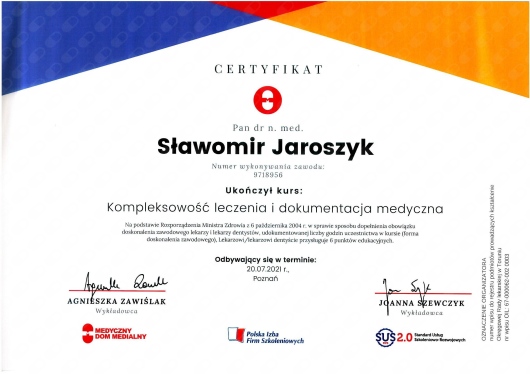 Wszyscy regularnie uczestniczymy w konferencjach naukowych i szkoleniach, pogłębiamy naszą wiedzę by była tak nowoczesna, jak to tylko możliwe. Należymy do międzynarodowych towarzystw naukowych, publikujemy prace w czasopismach branżowych.