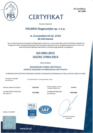 Placówka działa zgodnie z normami zarządzania jakością i bezpieczeństwem informacji – potwierdzonymi certyfikatami ISO 9001:2015 oraz ISO/IEC 27001:2013.
