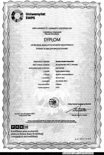 Z pewnością mogę polecić Panią psycholog :-] Jest uważna, wizyty nie wyglądają jak przesłuchanie, bierze pod uwagę indywidualność pacjenta oraz nie boi się zadawać trudnych pytań. Już na pierwszej wizycie w pozytywny sposób potrafiła zagiąć mnie w moich przemyśleniach i mimo że jestem na wyrobieniu diagnozy dla psychiatry to też podpowiada :-] To co dla mnie najważniejsze to to, że nie widzi w pacjencie pieniądzy z czym można się spotkać u niektórych specjalistów