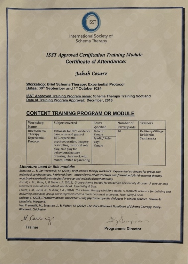 Odbyłam u Pana Jakuba terapię traumy metodą przedłużonej ekspozycji.
